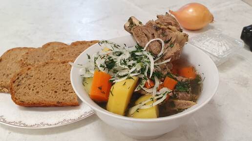 🌞Шурпа из говядины (на кости) с ароматным золотистым бульоном.🤗