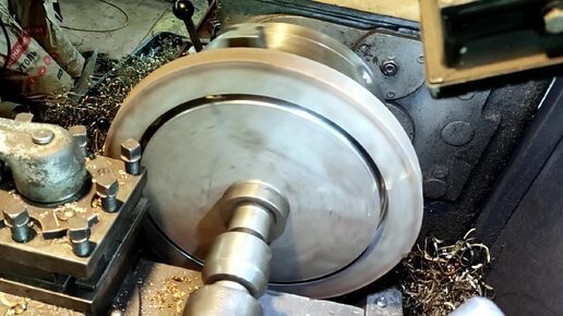 Две заготовки из одного куска металла. Фланцы из нержавейки. Токарный 1К62.