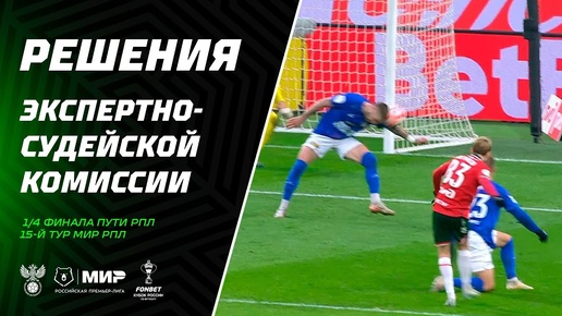 Решения ЭСК по матчам 1/4 финала Пути РПЛ FONBET Кубка России и 15-го тура Мир РПЛ