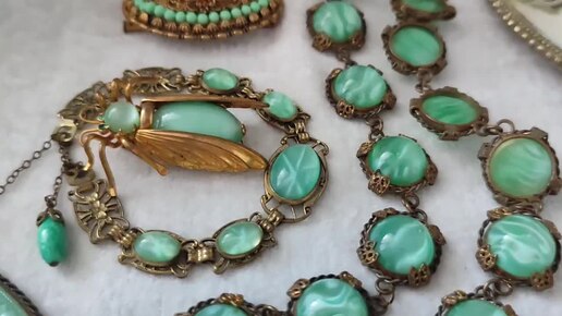 Такое редко увидишь: Антикварные украшения Чехословакии из стекла мятного оттенка