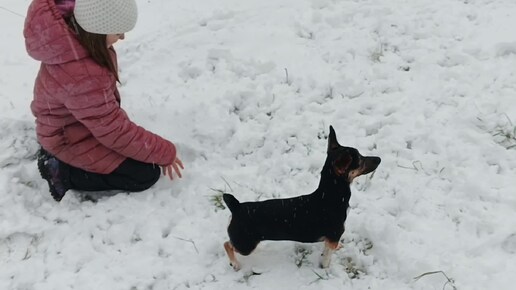 Альма носится по свежему снегу словно эндуро мотоцикл, и встает на задние лапки словно заяц
