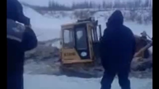 Водитель на зимнике провалился под лед вместе с бульдозером...