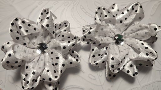 Школьные банты. Цветок канзаши для веселых косичек на каждый день. Мастер-класс, МК/DIY.