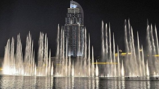 Светомузыкальный фонтан у подножья башни Бурдж Халифа в Дубае