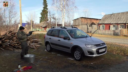 По-быстрому мою машину АКБ мини мойкой.
