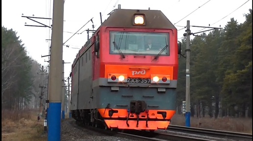 2ЭС6-357 "Синара" с грузовыми и пассажирскими вагонами
