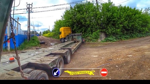 Узковато в Подмосковье на трале…Экскаватор скользит по тралу