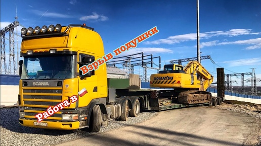 Кран Liebherr 400 тонн. Упал экскаватор с трала.