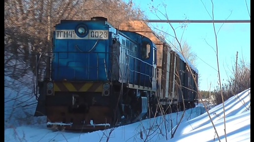 Тепловоз ТГМ4Б-0023 с грузовым составом