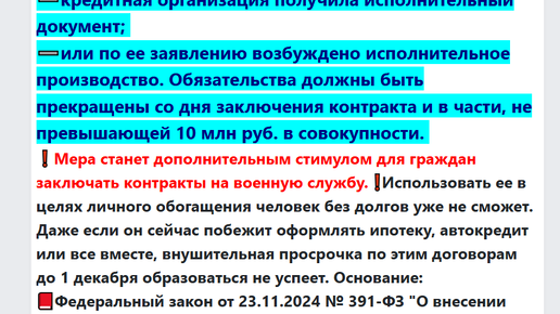 Далее: 391 ФЗ - о списании банковких долгов до 10 млн участникам СВО voenset.ru