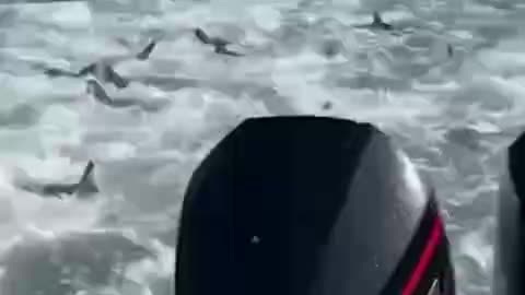Жуткое зрелище: в США лодку окружили сотни голодных акул
