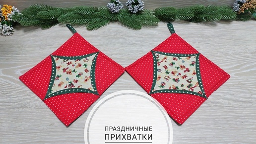 Новогодние прихватки с "Кафедральными окнами" - очень легко шить и результат получается нарядным.