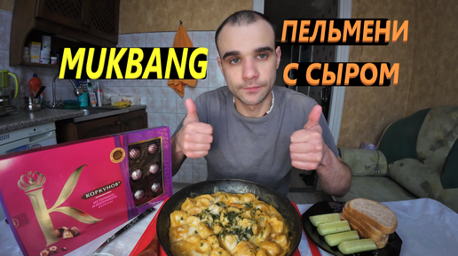 МУКБАНГ ПЕЛЬМЕНИ С СЫРОМ ЖАРЕНЫЕ / ХЛЕБ / ОГУРЕЦ / КОНФЕТЫ ШОКОЛАДНЫЕ / EATING MUKBANG ASMR АСМР