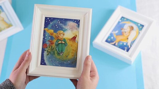 Картины "Маленький принц" на мраморной плитке, написанная россыпью измельченных самоцветов и украшен жемчугом