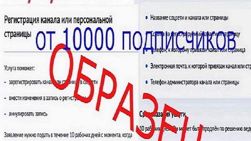 Регистрация канала или персональной страницы от 10000 подписчиков.Пошаговая форма заполнения