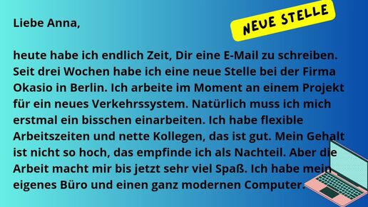 LESEN: читаем базовые тексты на немецком, тема: die neue Stelle😎