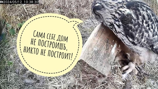 Сова Ёль принесла в гнездо бревно. Потому что дом надо строить из бруса, а не из соломы!