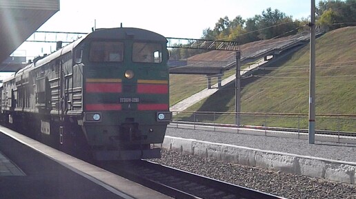 Тепловоз 2ТЭ10М-3260 с коротким составом и приветливой бригадой.