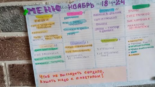 📝Меню на неделю 📌24 ноября 2024👆воскресенье