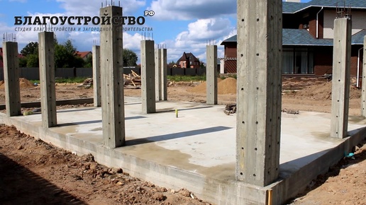 Монолитный фундамент гаража с колоннами.Благоустройство рф