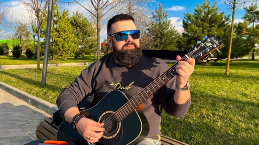 Уличный музыкант поёт Левый берег Дона под гитару (Михаил Шуфутинский)