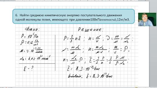 Физика ОК 030 Задача 6 Температура. Найти среднею кинетическую энергию поступательного движения одной молекулы гелия, имеющего при давл ...