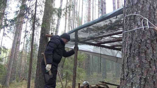 Далее: ВЫПАЛ СНЕГ! Шалаш готов к зиме! Зверь обходит ловушки!