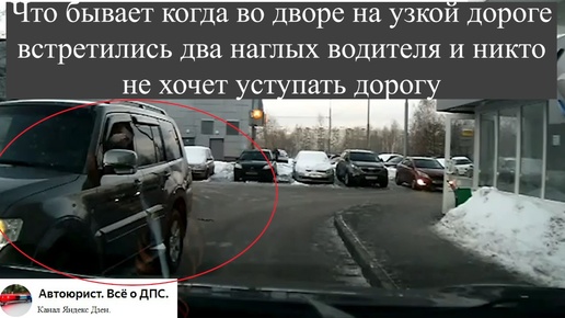 Что бывает когда во дворе на узкой дороге встретились два наглых водителя и никто не хочет уступать дорогу