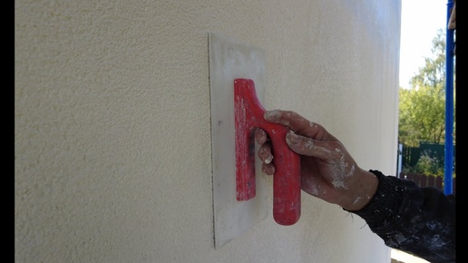 Технология нанесение декоративной штукатурки Ceresit на фасад дома с трёх ярусов строительных лесов
