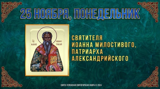 Свт. Иоанна Милостивого, патриарха Александрийского. 25 ноября 2024 г. Мультимедийный календарь