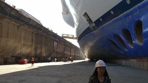 Огромный круизный корабль стоит без воды. На ремонте