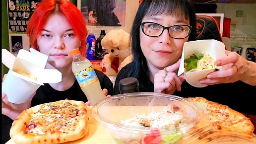 Мукбанг | Пицца,салат Цезарь, паста Карбонара. Обжорчик