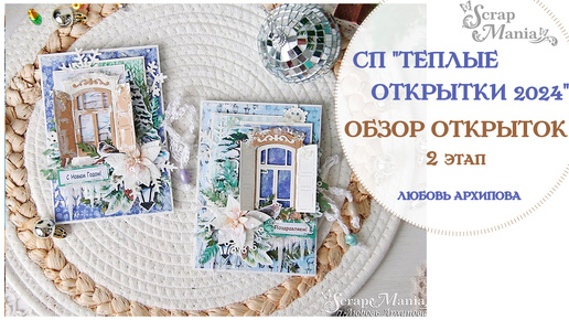 Новогодние открытки Любови Архиповой по 2 этапу СП "Теплые открытки 2024" ScrapMania