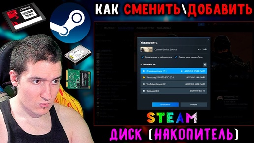 Как в Steam СМЕНИТЬ\ДОБАВИТЬ ДИСК (НАКОПИТЕЛЬ) для УСТАНОВКИ ИГРЫ\ПРИЛОЖЕНИЯ