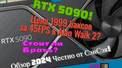 RTX 5090! Цена 1999 баксов за 45FPS в Alan Wake 2? Стоит ли брать? Обзор 2024 Честно от СэнСэя!