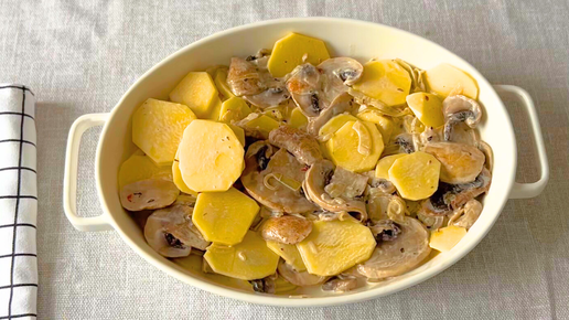 Картофельная запеканка в духовке с грибами. Простой рецепт на ужин