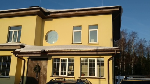 Простенький фасад обычного подмосковного дома, утепление пенопластом