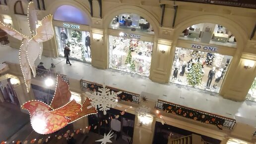 Москва. Новогодний ГУМ. Ёлочные шары с жостовской росписью, "Ярославская майолика" игрушки и скульптура .