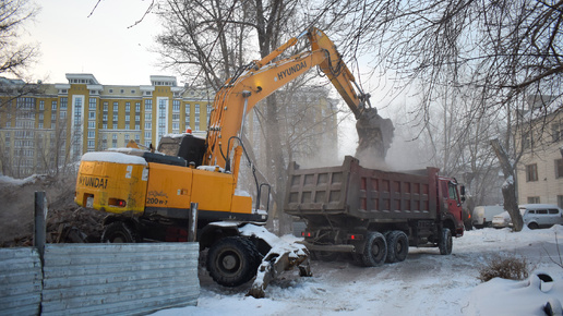 Экскаватор Hyundai Robex 200W-7. Погрузка самосвалов МАЗ-5516 и HOWO ZZ3257.
