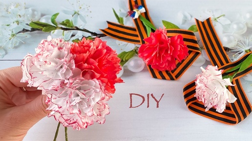 Гвоздика Цветы из фоамирана Своими руками Брошь к 9 Мая Carnation flower making from Eva Foam paper