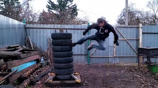 5-й раунд. Одними ногами. Удары ногами по шинам.