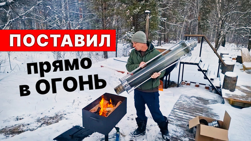 ДЫМОХОД для БАНИ. Поставил СТЕКЛЯННУЮ ТРУБУ прямо в ОГОНЬ.