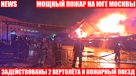 Масштабный пожар на юге Москвы. К тушению огня привлекались 2 вертолёта и пожарный поезд