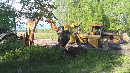 Бульдозер Б10М И Экскаватор спасают трактор из болота 2 часть..