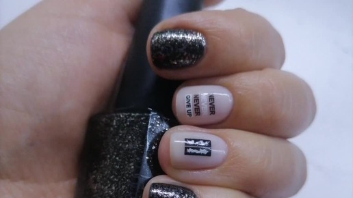 Маникюр на коротких ногтях. Чёрный лак с дизайном слайдерами
