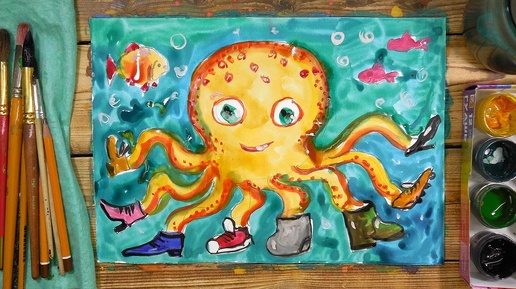 Как нарисовать Осьминога. Урок рисования для детей от 4 лет, РыбаКит