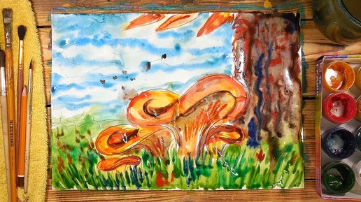 Как нарисовать Грибы Лисички. Урок рисования для детей от 4 лет, РыбаКит