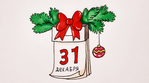 Как нарисовать новогодний календарь 31 декабря, новогодние рисунки для срисовки