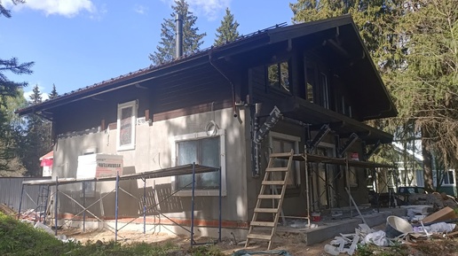 Как производится оштукатуривание фасадов дома из блоков тёплой керамики Porotherm, штукатурка Baumit