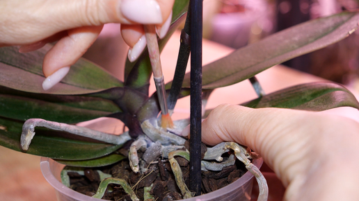 Чищу новых. Нужно вмешиваться. Орхидея Бабочка Арт нуво - черный ствол. Бо пинк очаги на листьях.